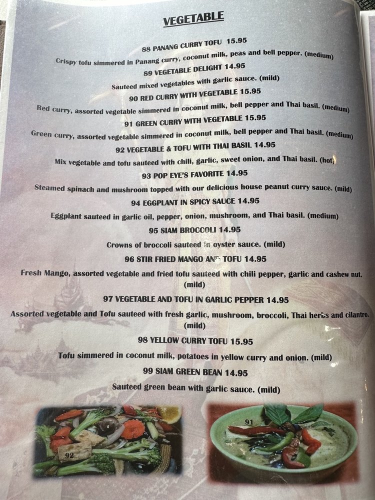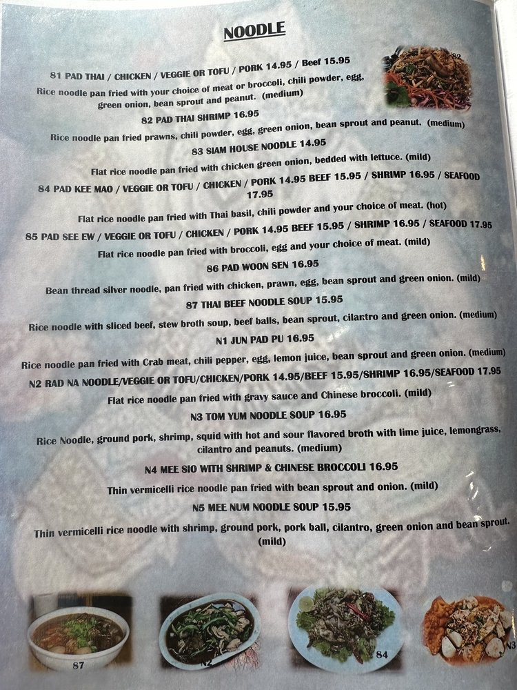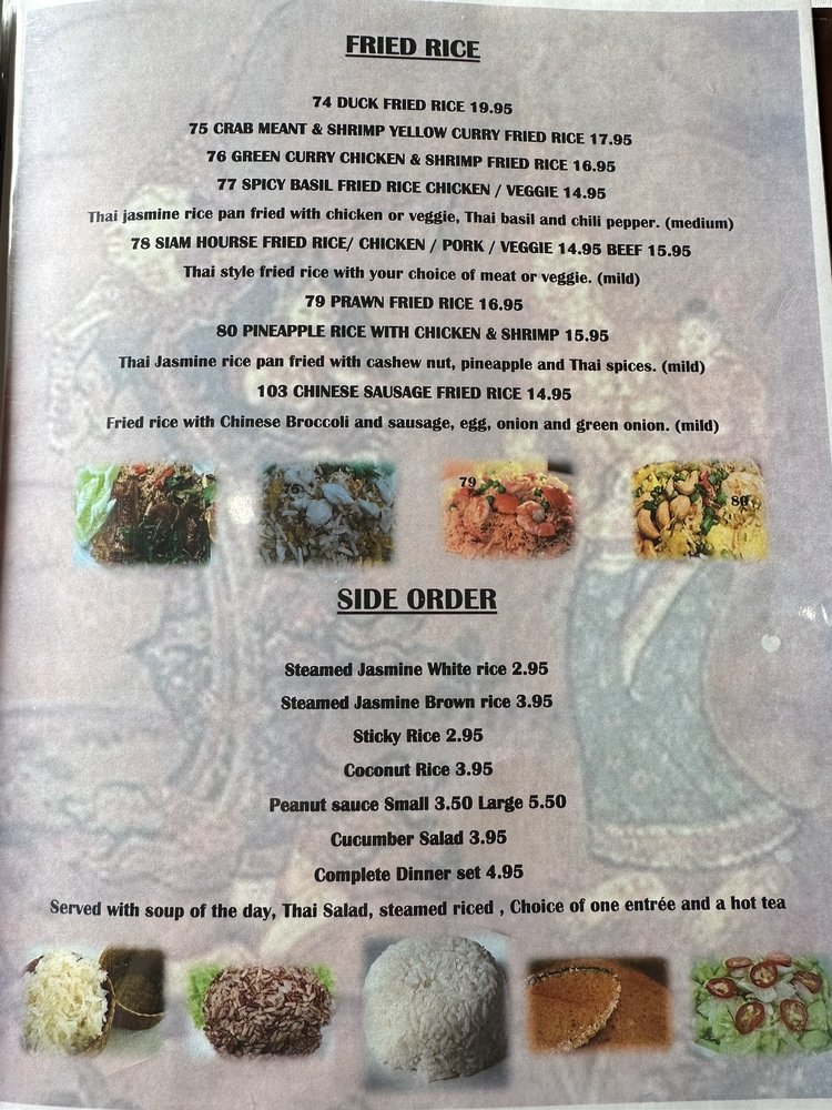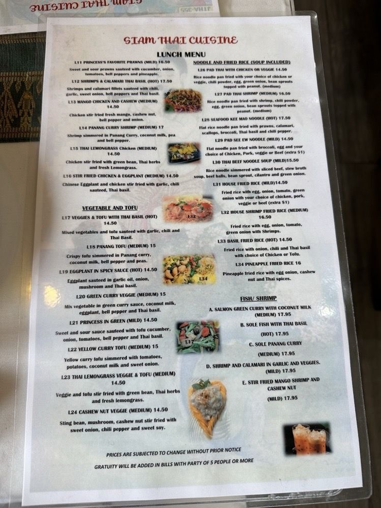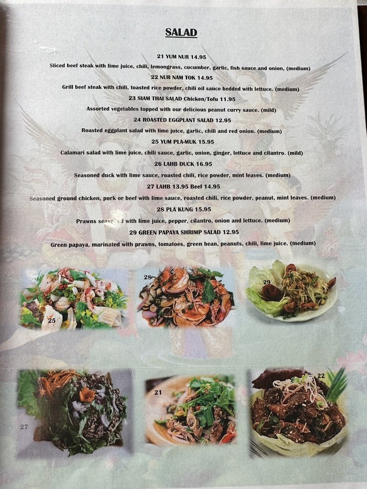 Siam Thai Cuisine offers a variety of traditional Thai dishes with a cozy and well-decorated interior. Their menu includes flavorful appetizers like Angel Chicken Wings and Beef Satay, soups like Fish Soup and Siam Rice Soup, and salads like Green Papaya Salad and Lahb Duck Salad. Customers have praised the Pad See Ew with chicken and the green curry for their delicious flavors. The restaurant can get busy but provides a comfortable dining experience with good service. With a focus on fresh ingredients and authentic recipes, Siam Thai Cuisine is a go-to spot for comforting Thai food. Consider trying their lunch combos for a satisfying meal.
